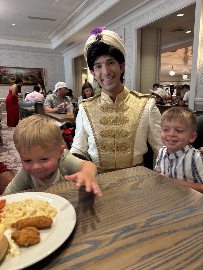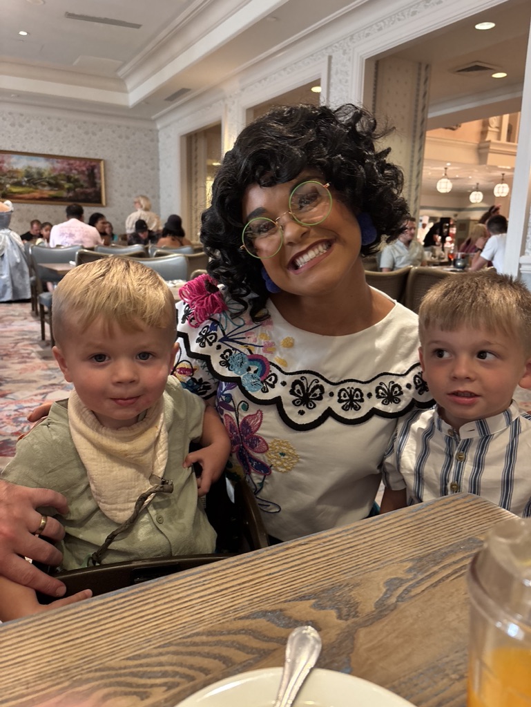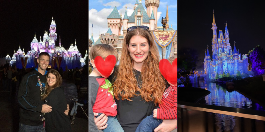 Another option is splitting up your party. My husband and I have split up by taking 2 kids each, or one of us takes the boys and the other takes the baby. We have requested adjoining rooms that give us a connecting door so we can move back and forth between the rooms without exiting through the main door. We’re able to get our bigger boys situated and ready to sleep while the baby is already off to pixie-dusted dream land.