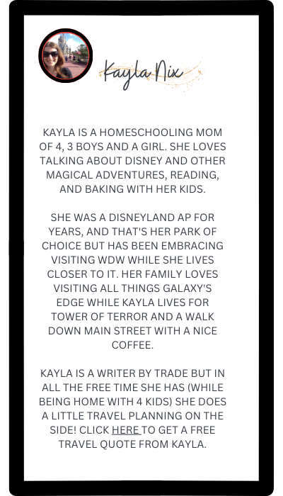Offsite resorts are definitely an option. I love the perks of staying in the Disney bubble: the extra 30 minutes you can have in the park, access to the dining plan, and resort transportation. However, timing, budget, and desired accommodations don’t always line up with that. I highly recommend chatting with someone who knows the area for referrals to the best off-property spaces for your family!